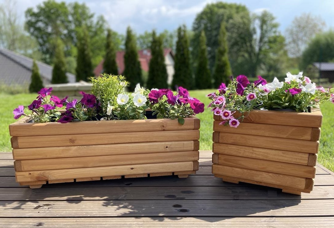 Drevený záhradný kvetináč AKSAMIT je krásnym a prírodným doplnkom pre vašu záhradu, terasu alebo balkón. Jeho jedinečný dizajn a použitie kvalitného dreva prinesie do vášho vonkajšieho priestoru eleganciu a príjemnú atmosféru.