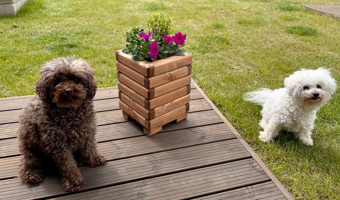 - Kvetináč je vyrobený z vysoko kvalitného dreva, ktoré je pevné a odolné. Drevo je ošetrené tak, aby odolávalo poveternostným vplyvom a predĺžilo životnosť kvetináča. Na tento účel slúži dvojitý náter impregnačným prostriedkom Sadolin Classic.
