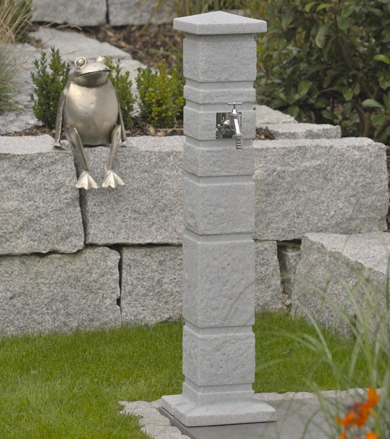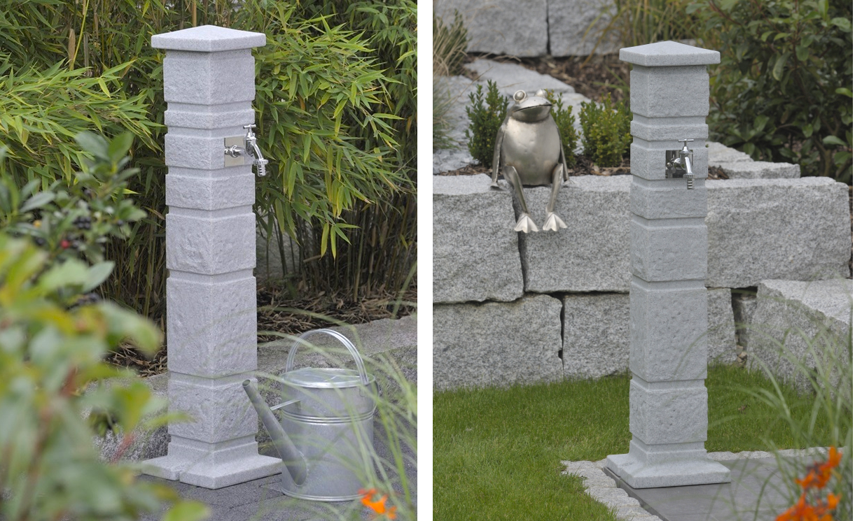 Záhradný stĺpik s kohútikom ROMANA, svetlo šedý granit