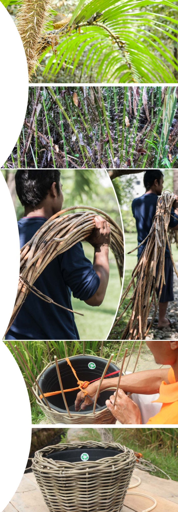 Všetky košíky sú ručne tkané, pričom zamestnanci pracujú z domu ako špecialisti na dizajn a tkanie. Používa sa plast z oceánov, ktorý sa recykluje a využíva v unikátnych dizajnových výrobkoch, čím sa minimalizuje odpad.