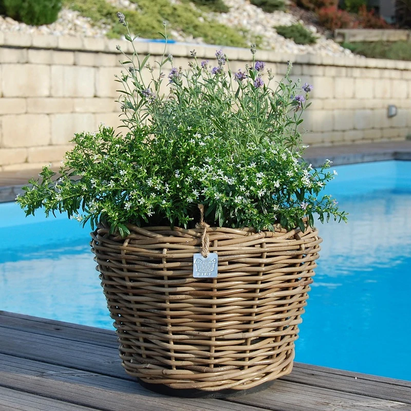 Vnútorná vložka kvetináča je vyrobená z recyklovaného plastu, ktorý pochádza z indonézskych pobrežných oblastí. Vložka nemá otvory, čo je ideálne pre interiérové použitie. Pre vonkajšie použitie je možné do vložky vyvŕtať otvory pre odtok prebytočnej vody. Ideálne sa hodí do záhrad a na terasy, pretože prútie neprichádza do styku s vonkajšími povrchmi.
